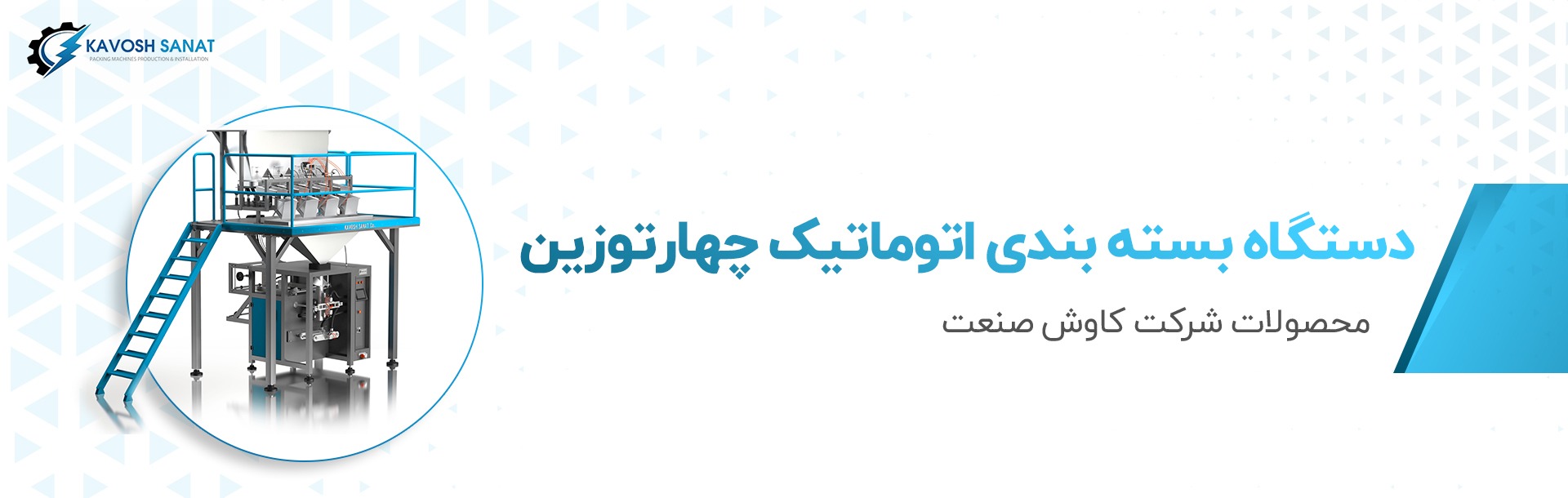 دستگاه بسته بندی اتوماتیک چهار توزين جهت بسته بندی انواع مواد گرانولی می باشد. مکانیزم عملکرد دستگاه بسته بندی چهار توزین اتوماتیک می باشد. دستگاه بسته بندی چهار توزین مناسب بسته بندی موادی مانند خشكبار ، حبوبات ، غلات ، چای، تافی ، سبزی خشك ، چيپس ، قند و شكر ، ماكارونی فرم ، مواد دارويی وشيميايی و …است.